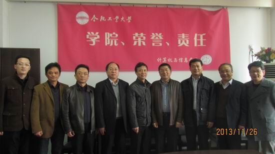 2013年11月26日,苏州大学计算机科学与技术学院胡新华书记、刘青山院长、李凡长副院长一行访问91网址 。学院蒋建国书记、杨学志副院长接待了来访的客人,计算机科学与技术系、电子信息工程系和通信工程系系主任也同时出席。