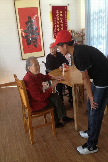 10月13日下午14:00,来自学院的20名大学生志愿者们从学校出发,前往明珠晚晴敬老院,受到了院长和老人们热情接待。志愿者们自觉帮老人打扫卫生,积极与老人们亲切交流,为老人们表演节目,陪伴老人观看红色电影,悉心听取老人们的谆谆教诲,现场欢歌笑语,场面其乐融融,赢得了老人及敬老院负责人的一致肯定。下午18:00,本次活动在老人们的依依不舍中结束。