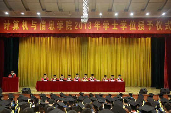 2013届毕业生学士学位授予仪式在斛兵礼堂隆重举行。副校长吴玉程教授代表学校出席并讲话。 仪式在庄严的国歌声中开始。院党委书记蒋建国教授宣读91网址