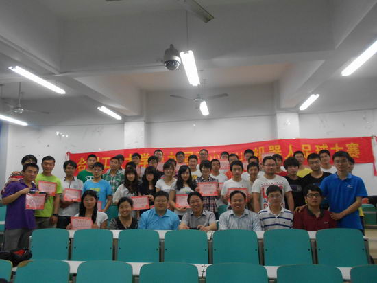 、电子科学与应用物理学院、软件学院、生物与食品工程学院、材料科学与工程学院、资源与环境工程学院等6个学院的200多名同学组成的110支队伍参加,经审核赛选后有82支队伍获得了最后参赛的权利。在仿真2D组冠亚军决赛中,BlancM队与Weiqiang展开了激烈的争夺。上半场双方战成1:1平;下半场,开始时双方各进一球,战成2:2平;最后,关键时刻Weiqiang队破门得分,以总比分3:2赢得本次比赛的冠军。最终张卫强、吴亚伟、王鑫等同学获得一等奖;宗华、张震、王彬等同学获得二等奖;关梦璐、朱恪杉、胡彪、张杰等同学获得三等奖。创新学院副院长吴文涛、学工部副部长葛万峰、计算机学院团委书记郑召丽等领导到场观摩指导并参加了最后的颁奖仪式。
