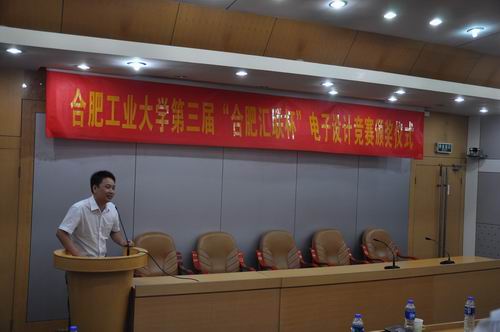 蒋建国书记给大家提出 “快乐学习”的思想。他还说创新是一个“喜新厌旧”的过程,只有在某种程度上抛弃旧的观念才能有新的创造,学校培养大学生的过程应该是由“人”到“才”的转变,本次大赛的赞助方,合肥汇联公司蔡先宝总经理对我校给予贵公司的长期关注与合作表示了衷心的感谢,并承诺公司将一如既往的支持学校的相关竞赛。
