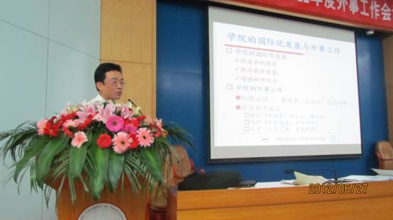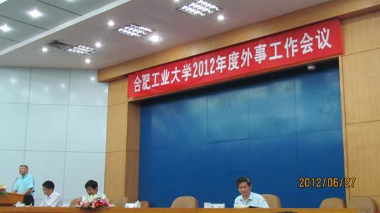 2012年度外事工作会议在学术会议中心大报告厅隆重召开,会议主题为“以外事工作为抓手,全面推进我校创新型高水平大学建设”。校长徐枞巍,教育部国际合作与交流司副司长生建学,副校长朱大勇、赵韩出席开幕式。朱大勇副校长主持开幕式并致辞,生建学副司长、徐枞巍校长分别在会上作了讲话,赵韩副校长作了外事工作报告。