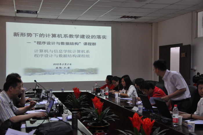 2012年5月5日至6日,由计算机系组织、“程序设计与数据结构”课程组主办的“程序设计与数据结构”课程群建设研讨会在六安市安徽国防科技职业学院内成功举办。参加会议的教师有“程序设计与数据结构”课程组的全体教师、《Java程序设计》、《网络程序设计》、《程序设计方法与艺术》主讲教师代表及计算机系、电子系相关负责人。
