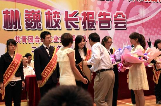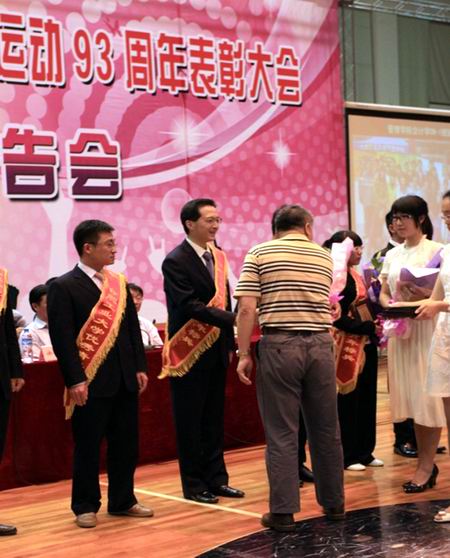 纪念建团90周年、五四运动93周年表彰大会在翡翠湖校区体育馆隆重举行,校长徐枞巍,校党委副书记、副校长庆承松,校长助理田作淳等出席表彰大会,并为获奖的“优秀青年标兵”和“五四红旗团支部“代表颁发荣誉证书。