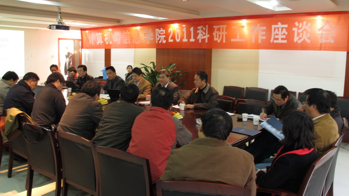 2011年12月17日下午,91网址 科研工作2011座谈会于文达大厦举行,学院领导班子成员、系主任、科研工作者代表共20余人出席会议,会议由刘晓平院长主持,科研院长杨学志做主题发言,韩江洪副校长发表重要讲话。