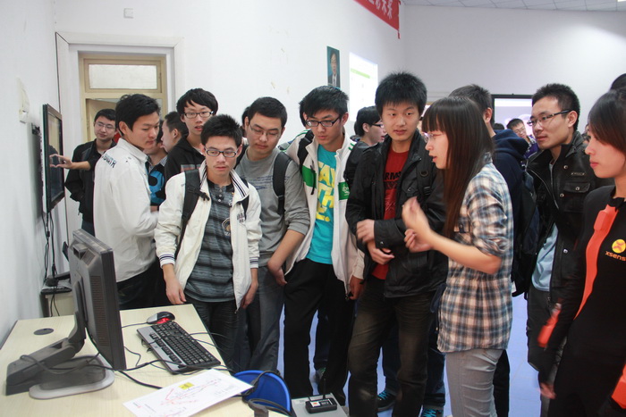 、机械与汽车工程学院、土木与水利工程学院等120多名来访者,VCC研究室师生向到来的客人们详细介绍了各种可视化技术和原理,展示了多种科学计算软件并交流了学习和生活经验,其中主题报告全面介绍VCC研究室各个方向的研究工作,研究生的详细解说,了解了VCC研究室的主被动立体设备和高性能计算环境,大家在现场亲身体验了VCC研究室、寰景科技和天源迪科开发的虚拟现实项目,过程中还不断交互,关于于学习、关于工程应用中的诸多问题,合肥微梦软件技术有限公司和合肥寰景信息技术有限公司合作向来访者展示了几种基于视觉传感器的游戏,天源迪科微博签名项目向参观者表达了实验室开放日的祝福。
