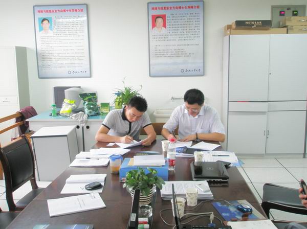 副院长郑利平副教授、网络所郑淑丽副教授、樊玉琦老 师、广州飞瑞敖公司总经理广州飞瑞敖梅仲豪博士等出席了成立仪式。成立仪式上,首先郑利平副院长代表学院发表了热情洋溢的欢迎词,介绍了学校、学院及网络所的相关情况,希望双方将联合实验室的工作继续推向深入,特别是加强在科研合作及毕业生实习、就业等方面的工作。随后双方进行了联合实验室合作协议的签署,并为联合实验室揭牌。
