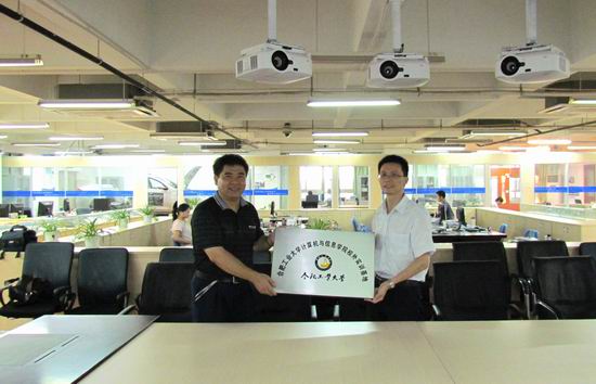 与无锡无线龙的萧总经理一同签署了共建教学实训基地协议,并为“TI无线龙亚洲大学计划联合挂牌实验室”和“无线龙校外实训基地”揭牌。签字仪式后,刘晓平院长视察了无锡无线龙的无线传感网教学装备,并表示学院重视对计算机专业学生实践能力的培养,希望打造校内教学与公司实训两位一体的实践培养模式。