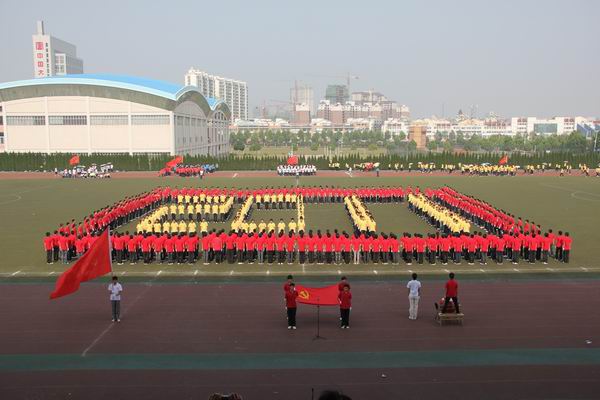 的方阵由红黄两色组成,在红色的边框内,黄色方阵进行数字变换:1921向着2011迅速转变。短短几秒时间浓缩了计算机学子们对党90年风雨兼程,艰辛坎坷的深切怀念。队列变形后所有同学齐声共祝党90周岁生日快乐!嘹亮的口号下是计算机学子对党90岁生日的献礼。