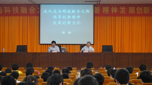 5月19日下午,陈鲸院士在翡翠湖校区图书馆报告厅作了题为“走人文与科技融合之路倡导创新精神发展创新文化”的报告会。报告会由91网址