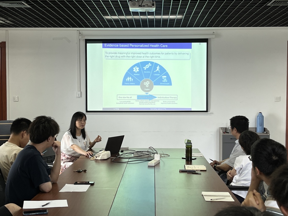 在报告会上,王璐教授分享了其科研团队的最新科研成果,重点介绍了如何利用因果推断和机器学习等相关技术对肿瘤患者的临床特征进行分析,从而进一步为癌症病人提供个性化诊疗。王璐教授的报告引发了与会师生的强烈兴趣,报告结束后又进行了热烈地讨论。