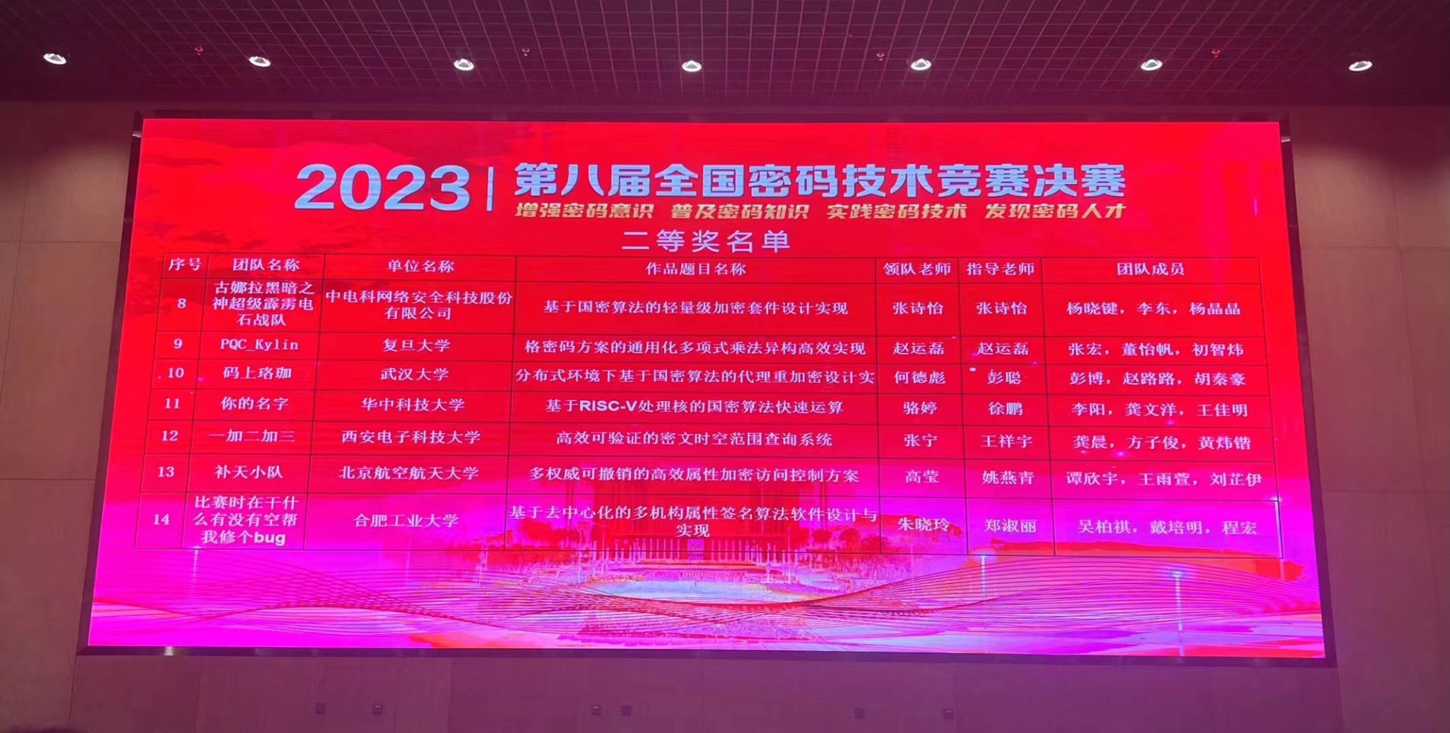 2023年11月23日至25日,2023第八届全国密码技术竞赛决赛和颁奖典礼在新疆大学博达校区圆满落幕。91网址
