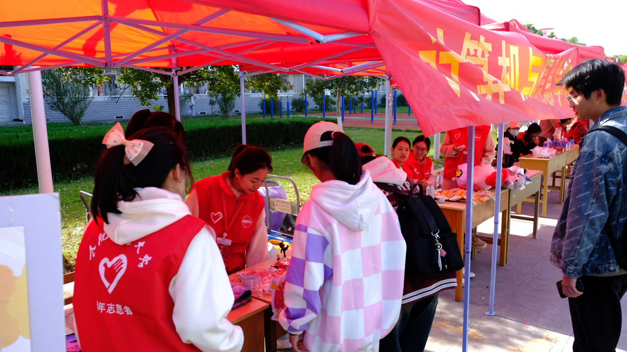 在志愿者们的精心布置和准备下,各种富有创意、新鲜感十足的商品被展示在义卖摊位,有物美价廉的生活用品、流行的玩具公仔、美味可口的零食等,吸引了众多工大师生前来购买。志愿者们热情地推荐,现场气氛活跃,义卖商品深受大家的喜爱。