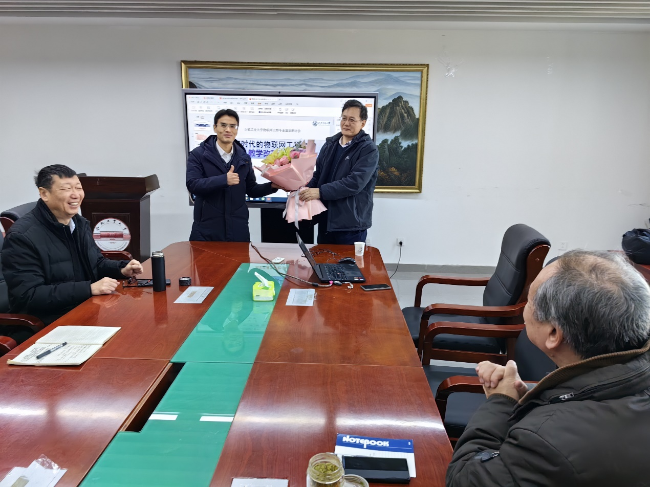 做“AI时代的物联网工程专业课程体系改革与探索”主题报告并交流指导,副院长夏娜教授、学院教指委副组长胡学钢教授、王浩教授出席。