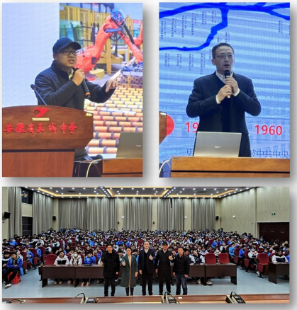 2023年12月19日-21日,教学副院长夏娜、计科系主任吴共庆、信通系副主任孙锐、创新实践中心主任金兢等16人组成的“2024招生宣讲团”,前往安徽省安庆市多所重点高中,举办了7场招生宣讲会(分别在桐城中学、望江县二中、安庆一中、岳西中学、桐城市天城高级中学、太湖中学、潜山野寨中学)。每场宣讲会均以科普讲座开场(主题涵盖了人工智能、5G通信、北斗导航、机器人、车辆网、数据安全等),在吸引和激励学生们的同时,全面介绍我校的情况、优势和特色,以及“千人一领军”的人才培养品牌。宣讲会现场气氛热烈,成效显著。