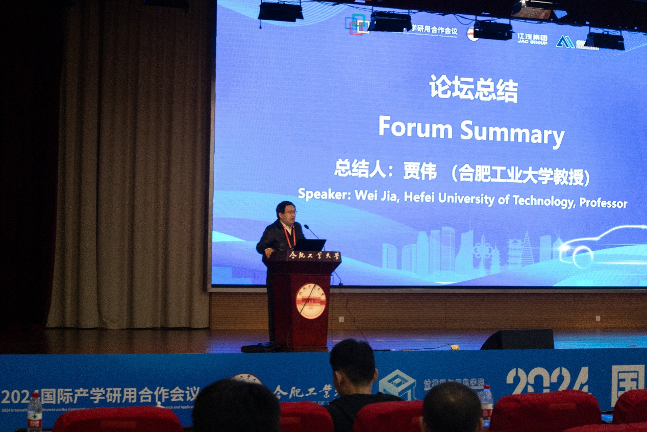 在专家报告结束后,论坛组织者贾伟教授对论坛进行了总结,对作报告的专家、论坛的组委会成员和前来会场的嘉宾、老师和同学进行了诚挚的感谢,并希望在明年的国际产学研用合作会议新能源与智能网联汽车研讨会上继续举办自动驾驶论坛。