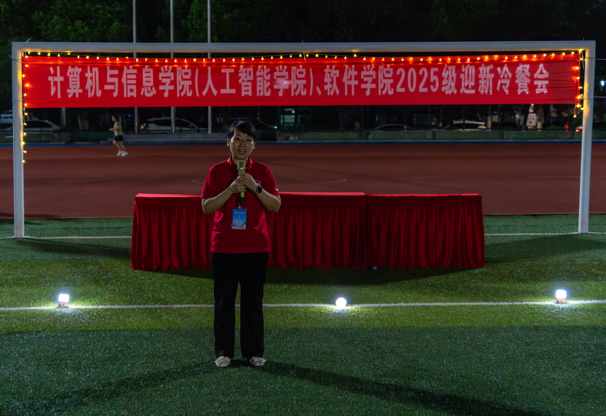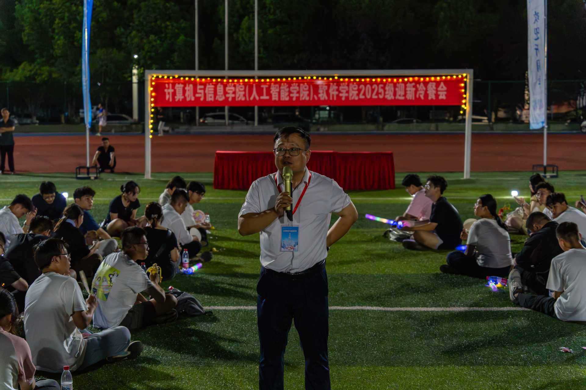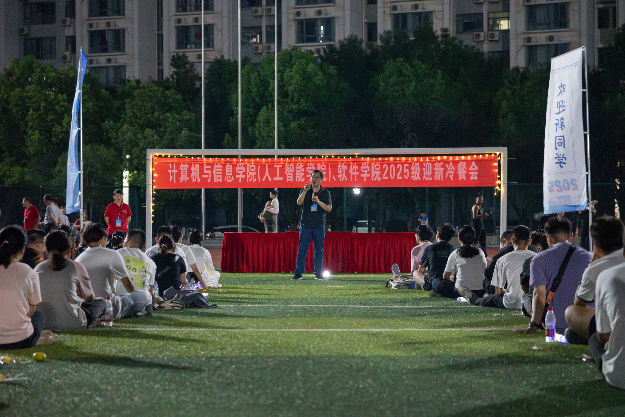 (人工智能学院)、软件学院于宣城校区风雨操场举办2025级迎新冷餐会。学院领导、教师代表、2025级新生及家长相聚一堂,在馥郁美食和悠扬旋律中,共同镌刻迎新季的美好记忆,开启大学新征程。