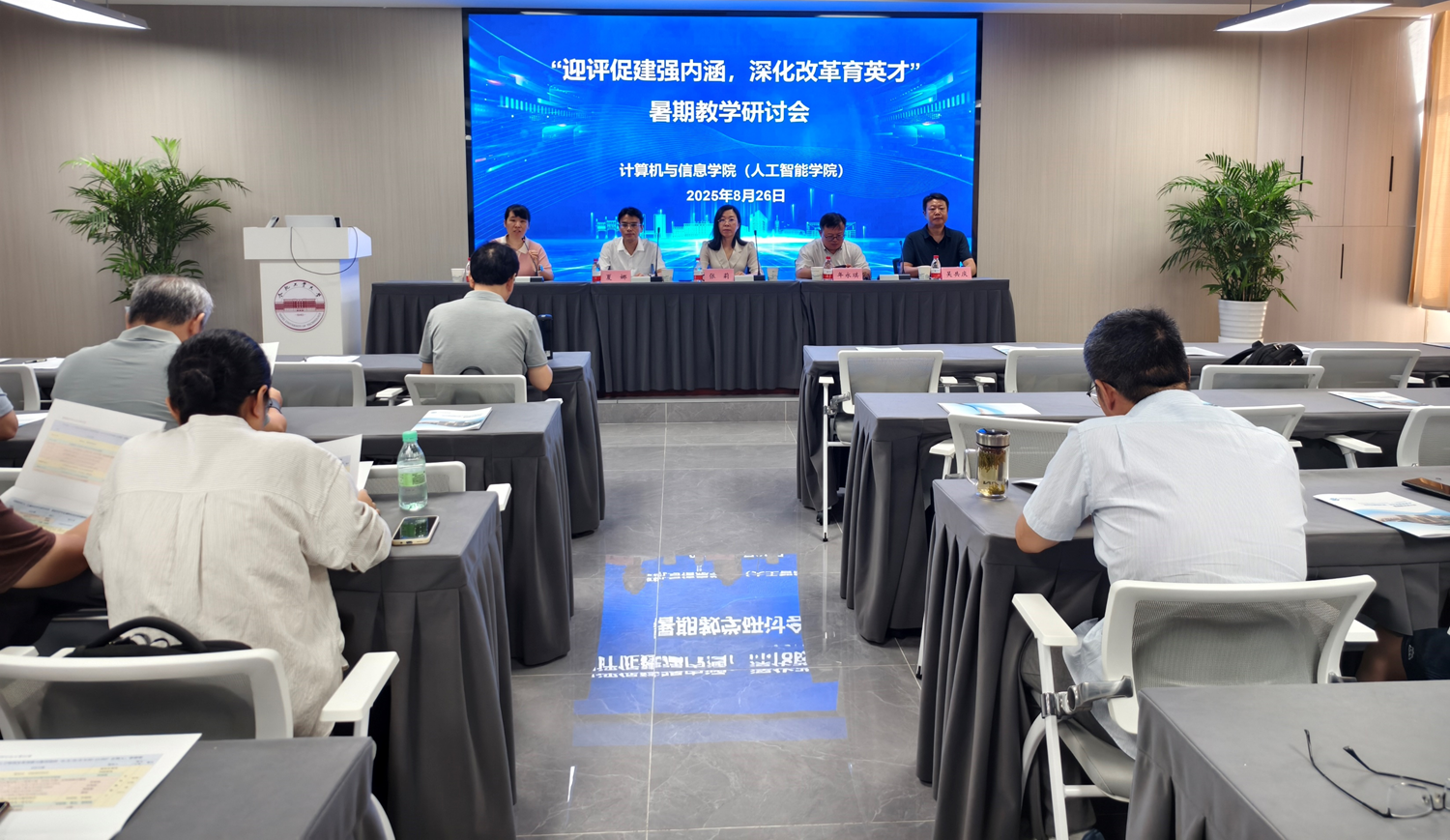 (人工智能学院)于2025年8月26日在翡翠湖校区召开“迎评促建强内涵,深化改革育英才”暑期教学研讨会。学校教务处处长张莉、副处长夏娜、学院党委书记年永琪、学院领导班子及全体教职工参会。
