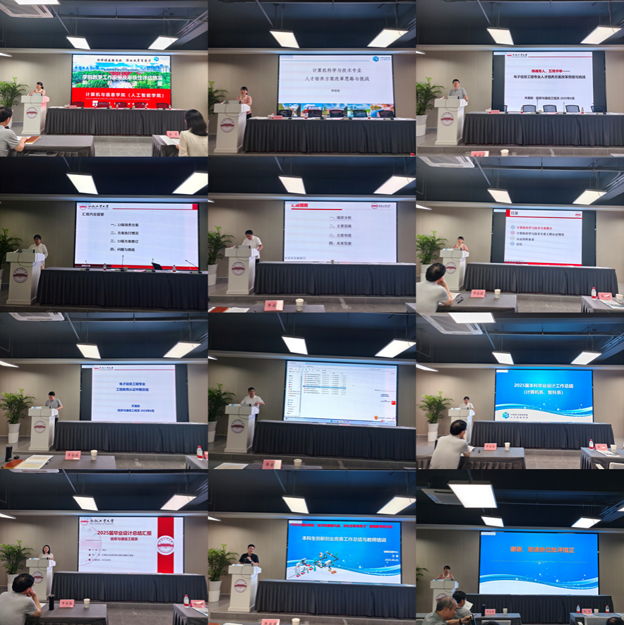 会议由李培培副院长主持。张莉处长、夏娜副处长、年永琪书记等领导在致辞中指出,本次大研讨处于学校深化教育教学改革、迎接审核性评估、提升人才培养质量的关键期,旨在聚焦学院本科教育教学改革的核心任务与难点堵点,形成共识、推动落实。随后,李培培副院长通报学院教学工作安排与审核性评估阶段进展。紧接着,在“2023版(2025年度)本科人才培养方案”专题中,李培培、齐美彬、郑淑丽、贾伟四位教师分别就计算机科学与技术、电子信息工程、信息安全、智能科学与技术等专业的新一轮培养方案改革思路与挑战作报告,引发广泛讨论。在工程教育认证中期总结与教师培训环节,李培培、齐美彬两位教授提出持续改进要求;夏娜副处长补充强调课程与教材建设要系统推进。随后,郑淑丽、黎洁两位教师总结2025届毕业设计工作并提出质量提升举措;卫星老师分享本科生创新创业竞赛组织与育人成效。