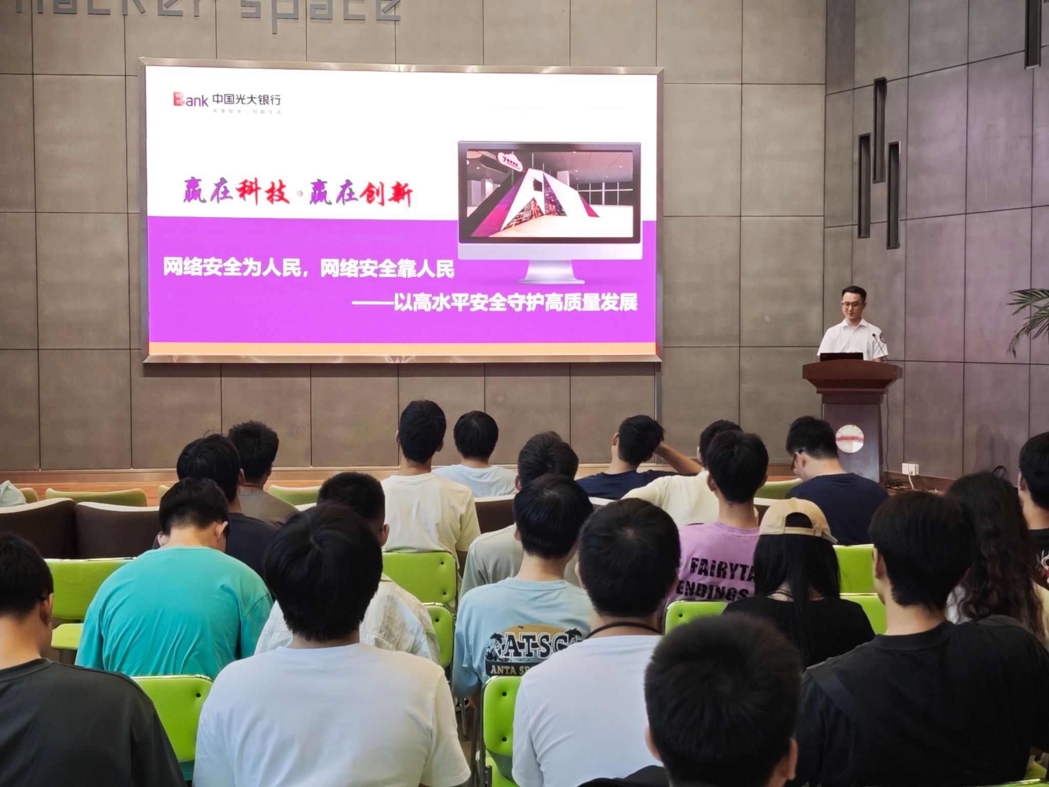 于翡翠湖校区科教楼B座大数据中心报告厅举办“网络安全进校园”主题活动。活动特邀光大银行网络安全专家,围绕“网络安全为人民,网络安全靠人民——以高水平安全守护高质量发展”开展专题讲座。