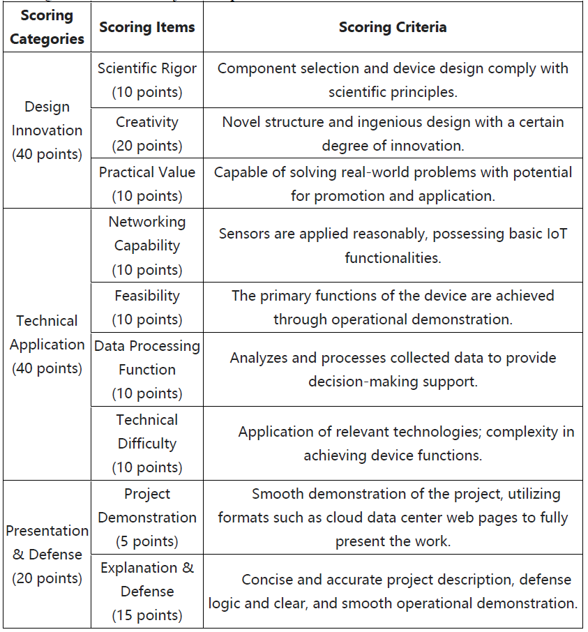 Full-time enrolled undergraduates and graduate students (excluding doctoral students) at our university may freely form teams to participate in the above four categories. The team size cannot exceed 3 members (specifically, for skills competitions ② IoT Perception and ③ Embedded Technology, each team requires 2 members). Undergraduates and graduate students cannot mix in the same team; interdisciplinary team formation is allowed. The number of advisors cannot exceed 2, with each advisor serving as the primary advisor for no more than 2 projects and as the secondary advisor for no more than 2 projects, for a total of no more than 4 projects.